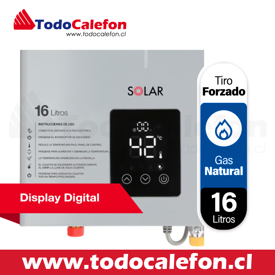 Función solar:  Este calefón es el complemento perfecto para los sistemas de calentamiento de agua con Paneles solares, Termo de acumulación y Sistemas de recirculación permitiendo ahorro de agua y gas.