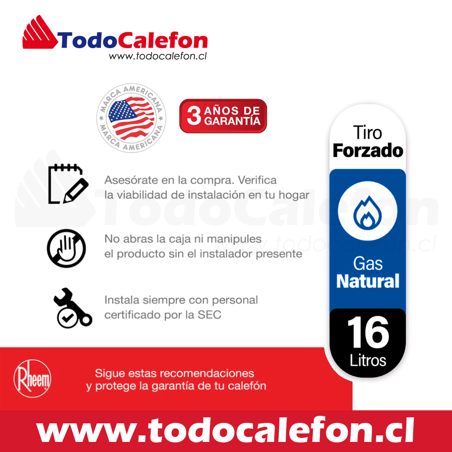 Calefón Rheem Tiro Forzado 16L GN Línea Prestige™