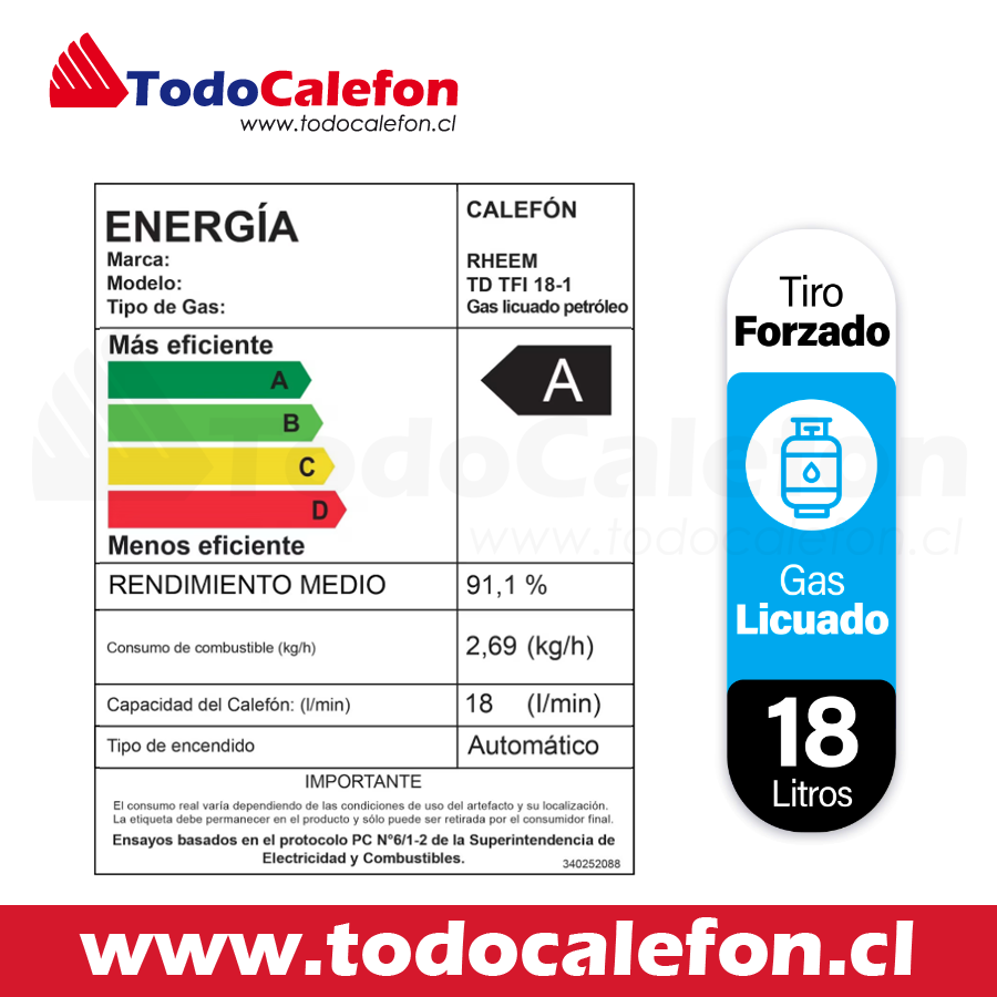 Calefón Rheem Tiro Forzado 18L GL Línea Prestige™
